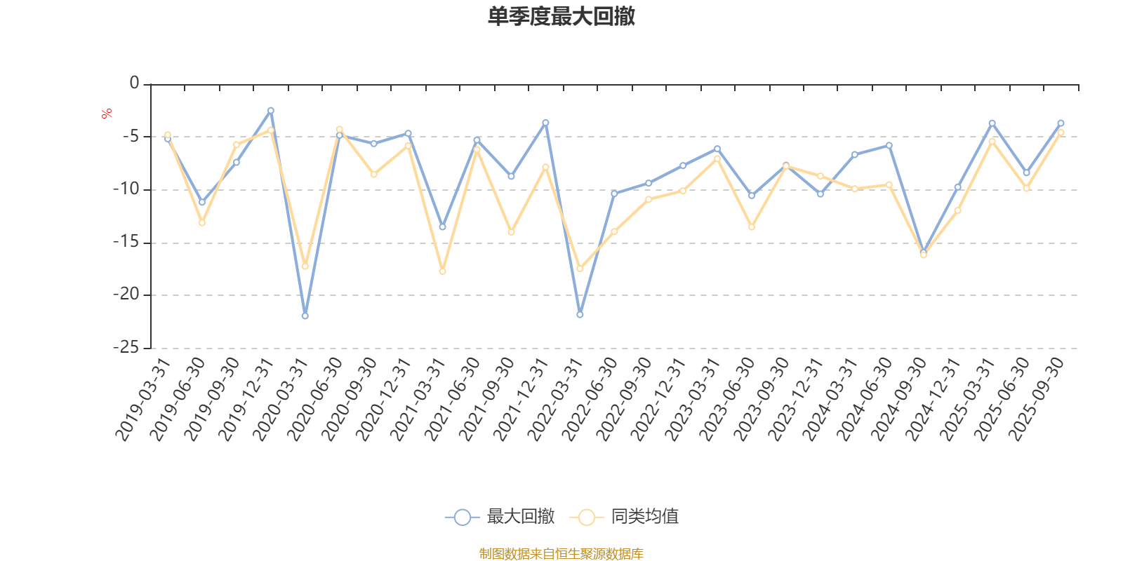 截至10月28日,基金近三年最大回撤为19.96%,同类可比基金排名1/9。单季度最大回撤出现在2020年一季度,为21.94%。