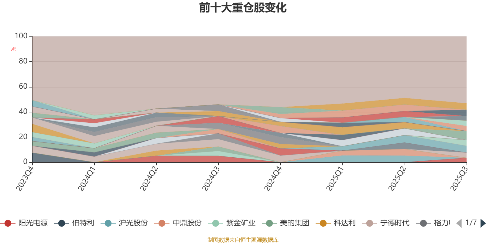 截至2025年三季度末,基金十大重仓股分别是浙江荣泰、豪能股份、福达股份、上海沿浦、众辰科技、安培龙、宁德时代、亿纬锂能、高测股份、阳光电源。