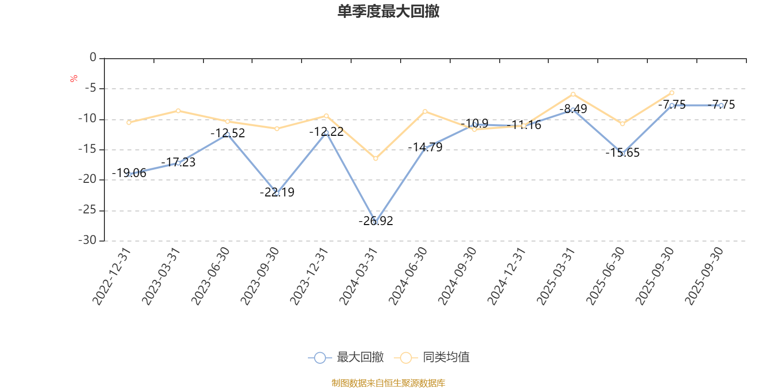 截至10月28日,基金近三年最大回撤为61.03%,同类可比基金排名507/513。单季度最大回撤出现在2024年一季度,为26.92%。