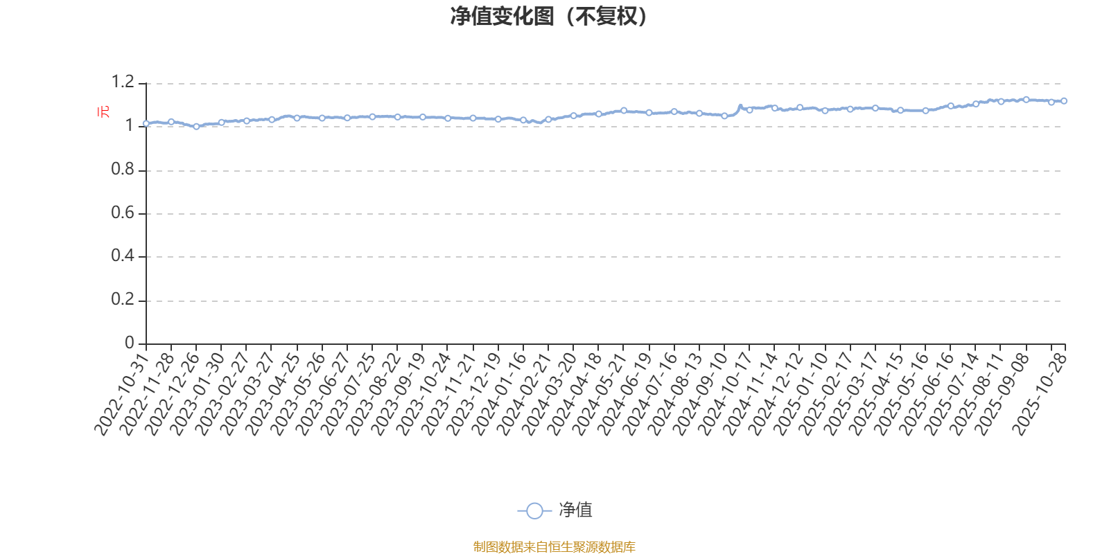 该基金属于偏债混合型基金。截至10月28日,单位净值为1.118元。基金经理是张弘和王烨斌。