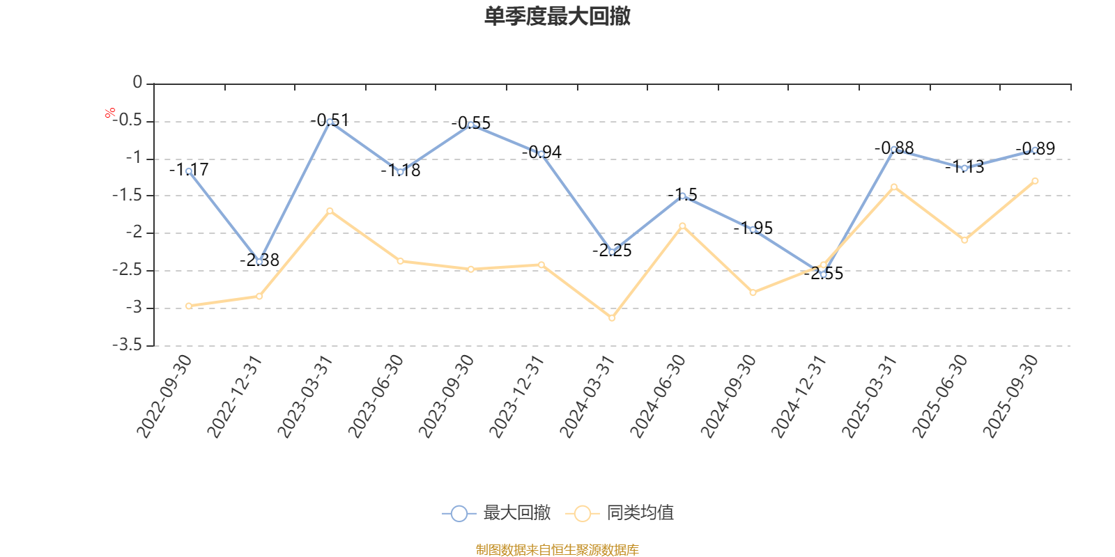 截至10月28日,基金近三年最大回撤为3.17%,同类可比基金排名70/535。单季度最大回撤出现在2024年四季度,为2.55%。