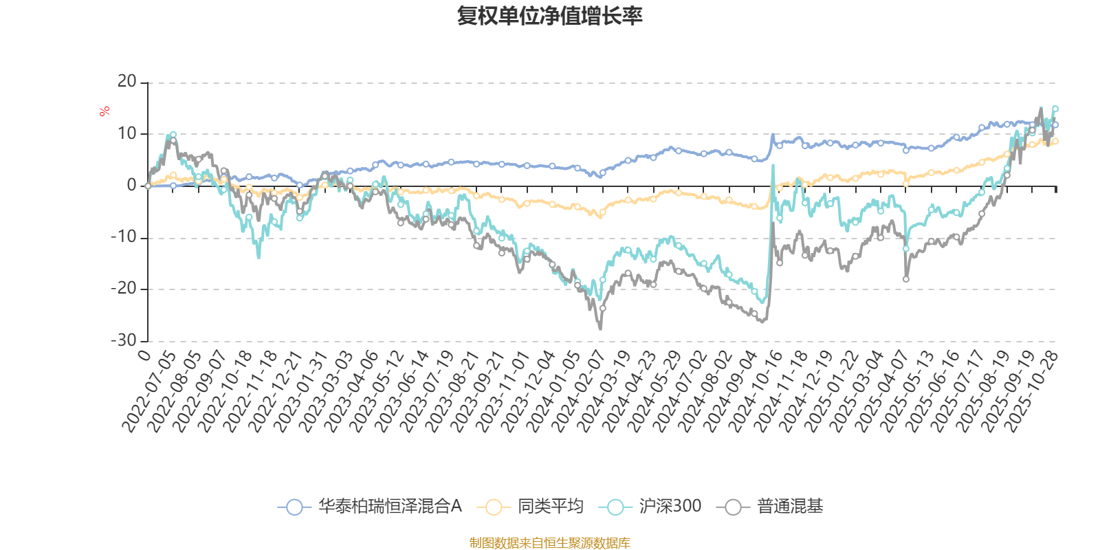 截至10月28日,华泰柏瑞恒泽混合A近三个月复权单位净值增长率为-0.11%,位于同类可比基金603/629;近半年复权单位净值增长率为4.23%,位于同类可比基金400/629;近一年复权单位净值增长率为2.96%,位于同类可比基金570/623;近三年复权单位净值增长率为10.03%,位于同类可比基金348/557。