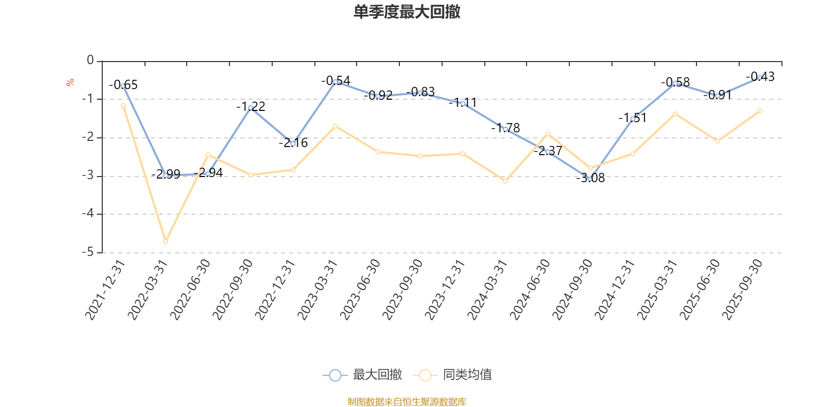 截至10月28日,基金近三年最大回撤为4.13%,同类可比基金排名128/535。单季度最大回撤出现在2024年三季度,为3.08%。