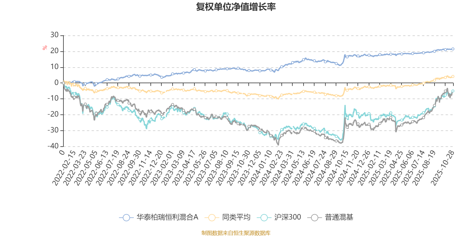 截至10月28日,华泰柏瑞恒利混合A近三个月复权单位净值增长率为1.59%,位于同类可比基金406/629;近半年复权单位净值增长率为2.77%,位于同类可比基金521/629;近一年复权单位净值增长率为3.50%,位于同类可比基金540/623;近三年复权单位净值增长率为15.88%,位于同类可比基金152/557。