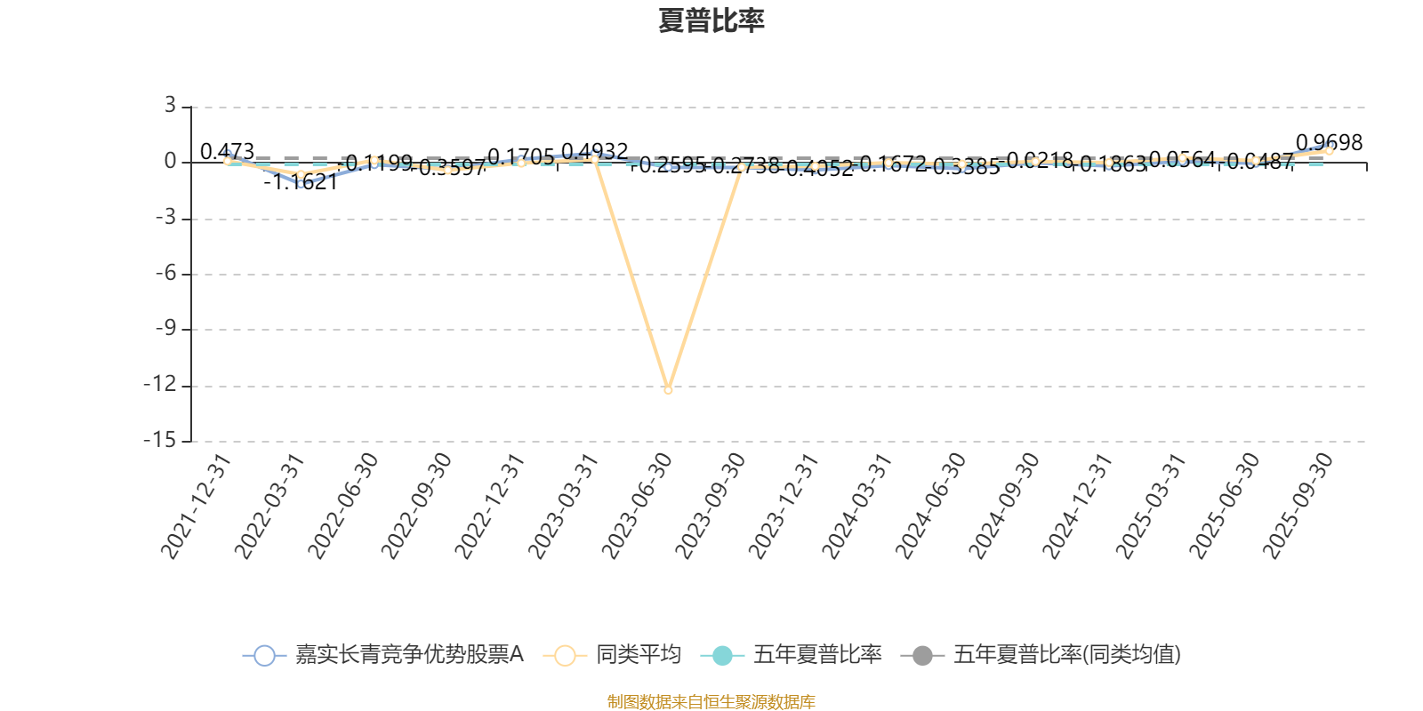 截至9月30日,基金近三年夏普比率为0.2295,位于同类可比基金69/85。