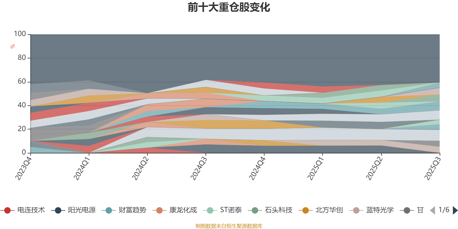 该基金持股集中度较高。截至2025年三季度末,基金十大重仓股分别是九号公司、澜起科技、铂科新材、银轮股份、正帆科技、蓝特光学、甘李药业、厦钨新能、先导智能、芯碁微装。