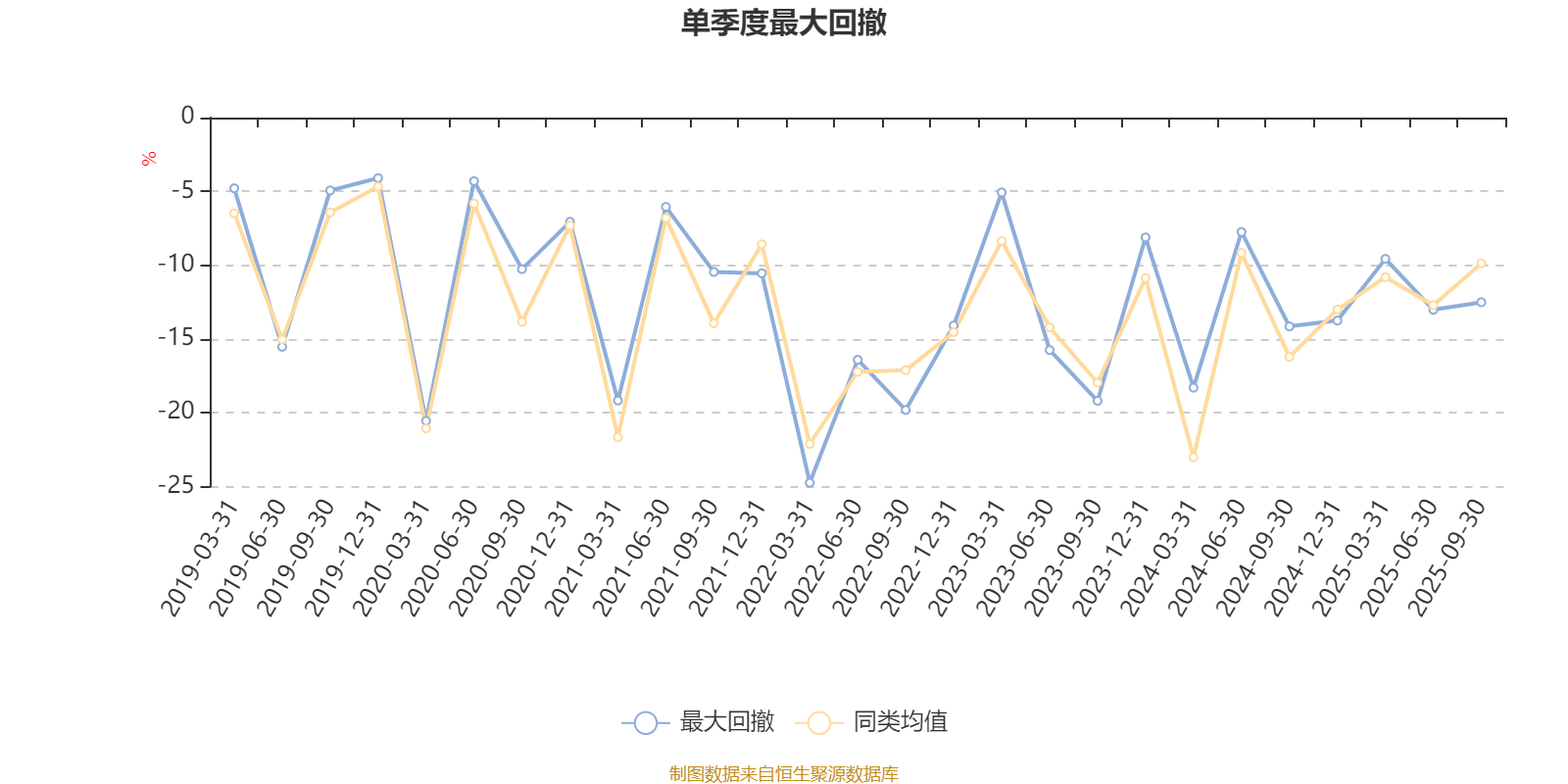 通过所选区间该基金净值增长率分位图,可以观察该基金与同类基金业绩比较情况。图为坐标原点到区间内某时点的净值增长率在同类基金中的分位数。