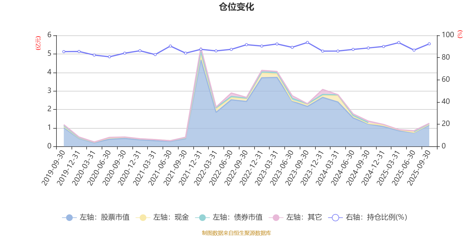 据定期报告数据统计,近三年平均股票仓位为89.68%,同类平均为88.24%。2023年三季度末基金达到93.66%的最高仓位,2020年上半年末最低,为80.75%。