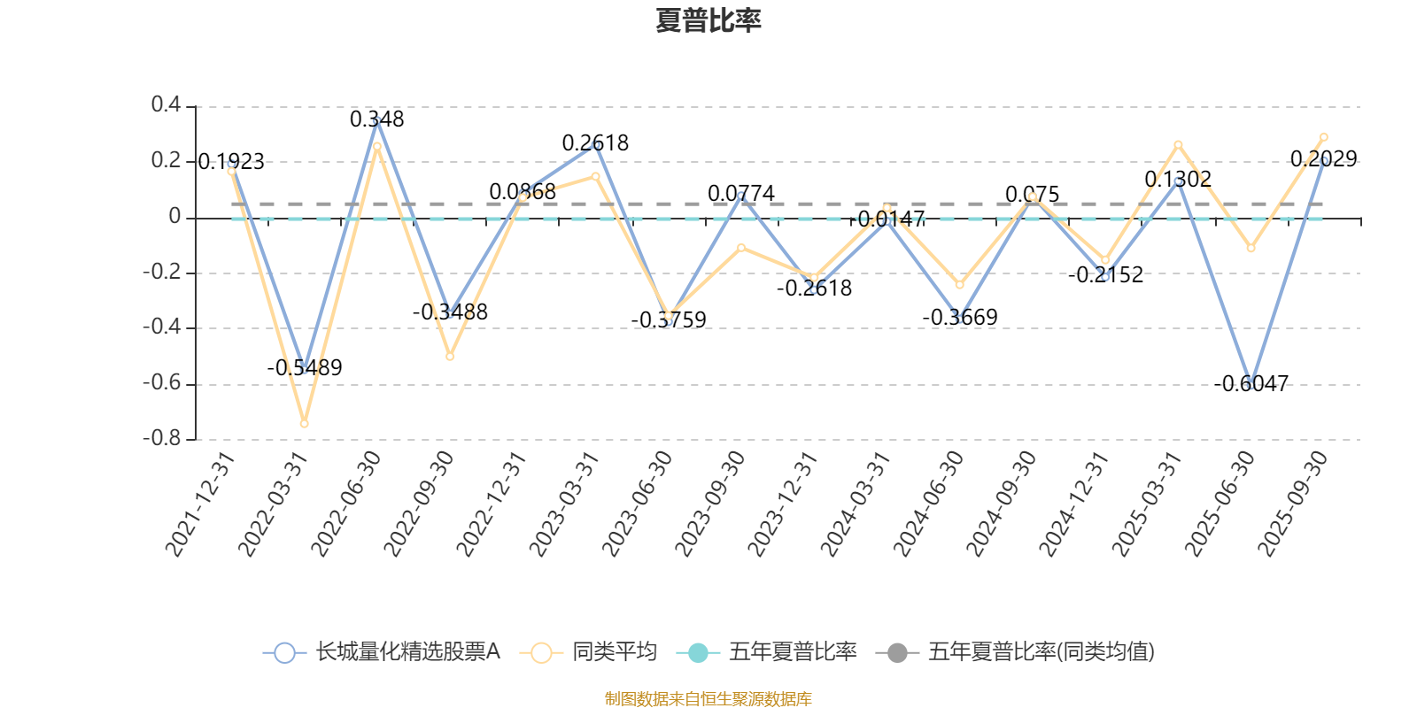 截至9月30日,基金近三年夏普比率为-0.0487,位于同类可比基金36/40。