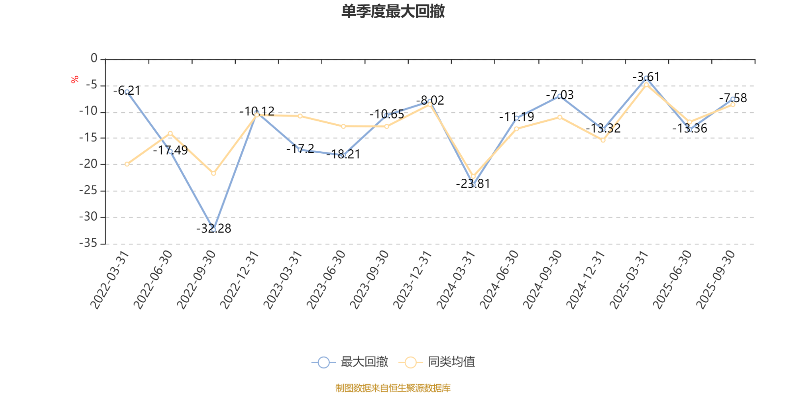 截至10月27日,基金近三年最大回撤为43.92%,同类可比基金排名55/75。单季度最大回撤出现在2022年三季度,为32.28%。