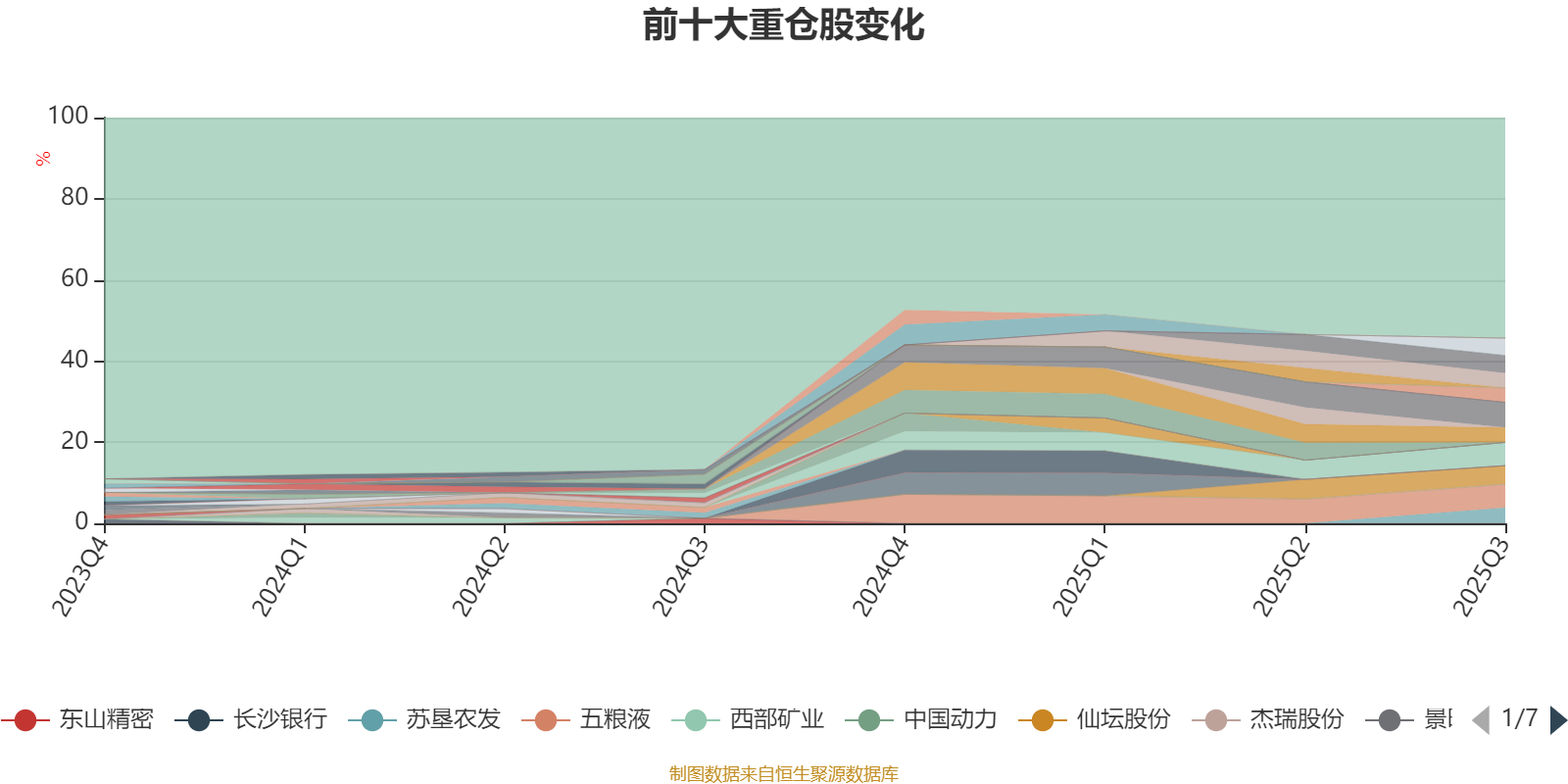 截至2025年三季度末,基金十大重仓股分别是海尔智家、五粮液、贵州茅台、仙坛股份、今世缘、星宇股份、苏垦农发、泸州老窖、中炬高新、东鹏饮料。