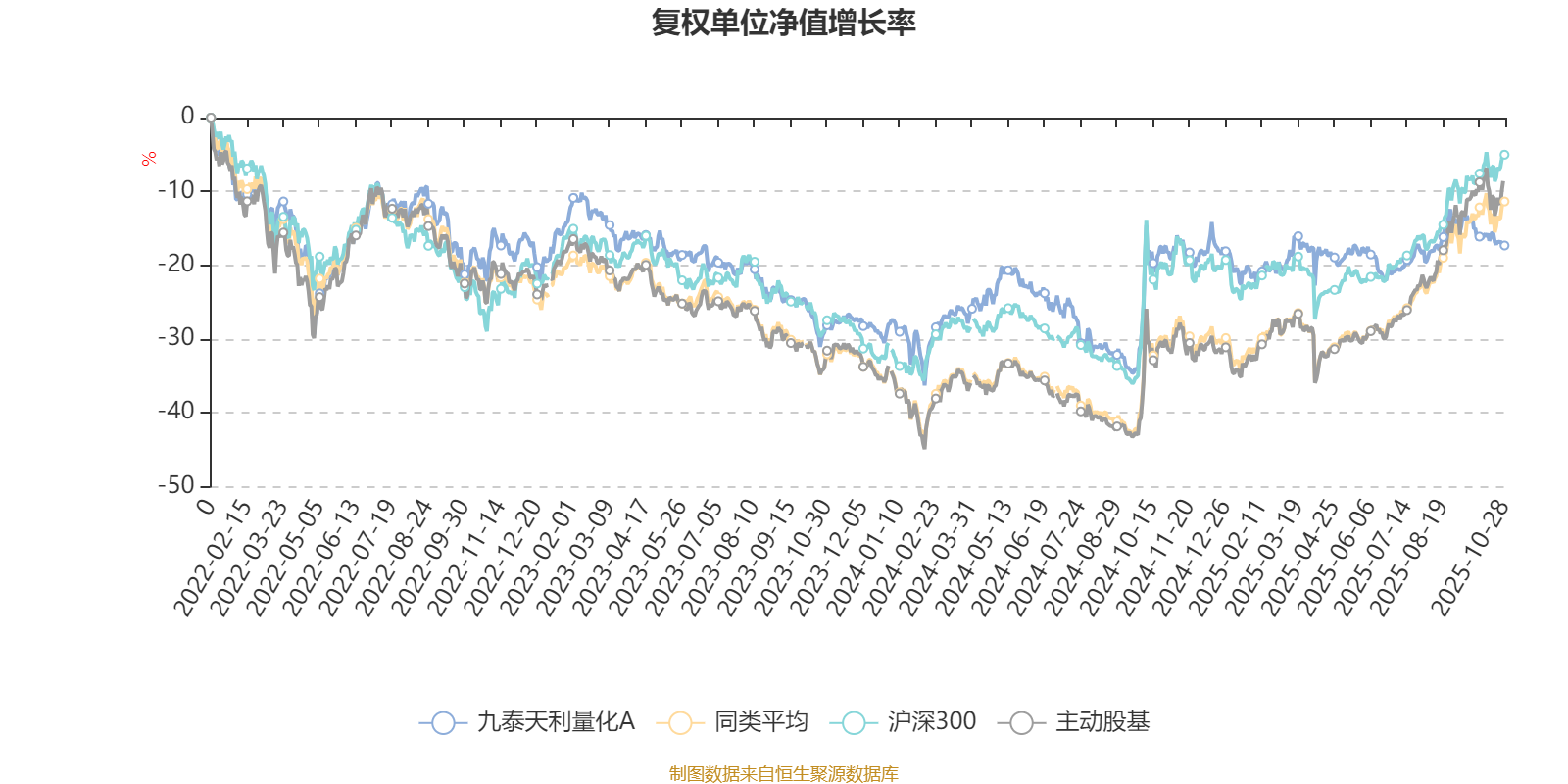 截至10月28日,九泰天利量化A近三个月复权单位净值增长率为1.01%,位于同类可比基金114/121;近半年复权单位净值增长率为2.66%,位于同类可比基金119/121;近一年复权单位净值增长率为0.05%,位于同类可比基金110/115;近三年复权单位净值增长率为5.98%,位于同类可比基金65/87。