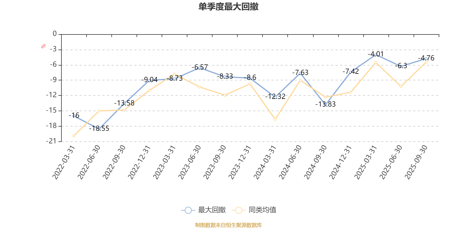 截至10月27日,基金近三年最大回撤为29.09%,同类可比基金排名24/87。单季度最大回撤出现在2022年二季度,为18.55%。