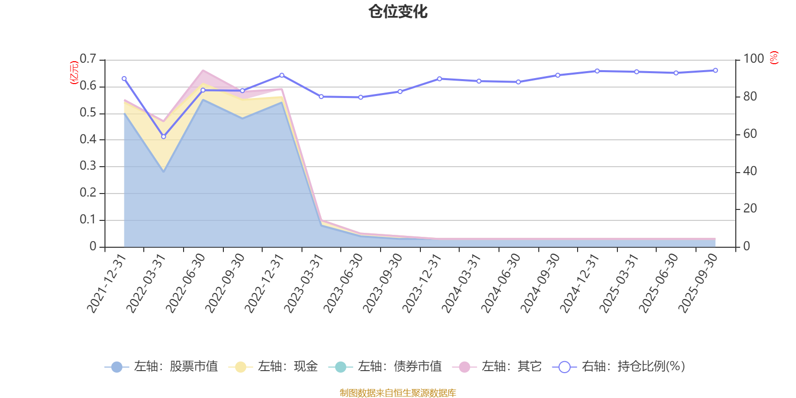 据定期报告数据统计,近三年平均股票仓位为88.99%,同类平均为88.23%。2025年三季度末基金达到94.32%的最高仓位,2022年一季度末最低,为58.94%。