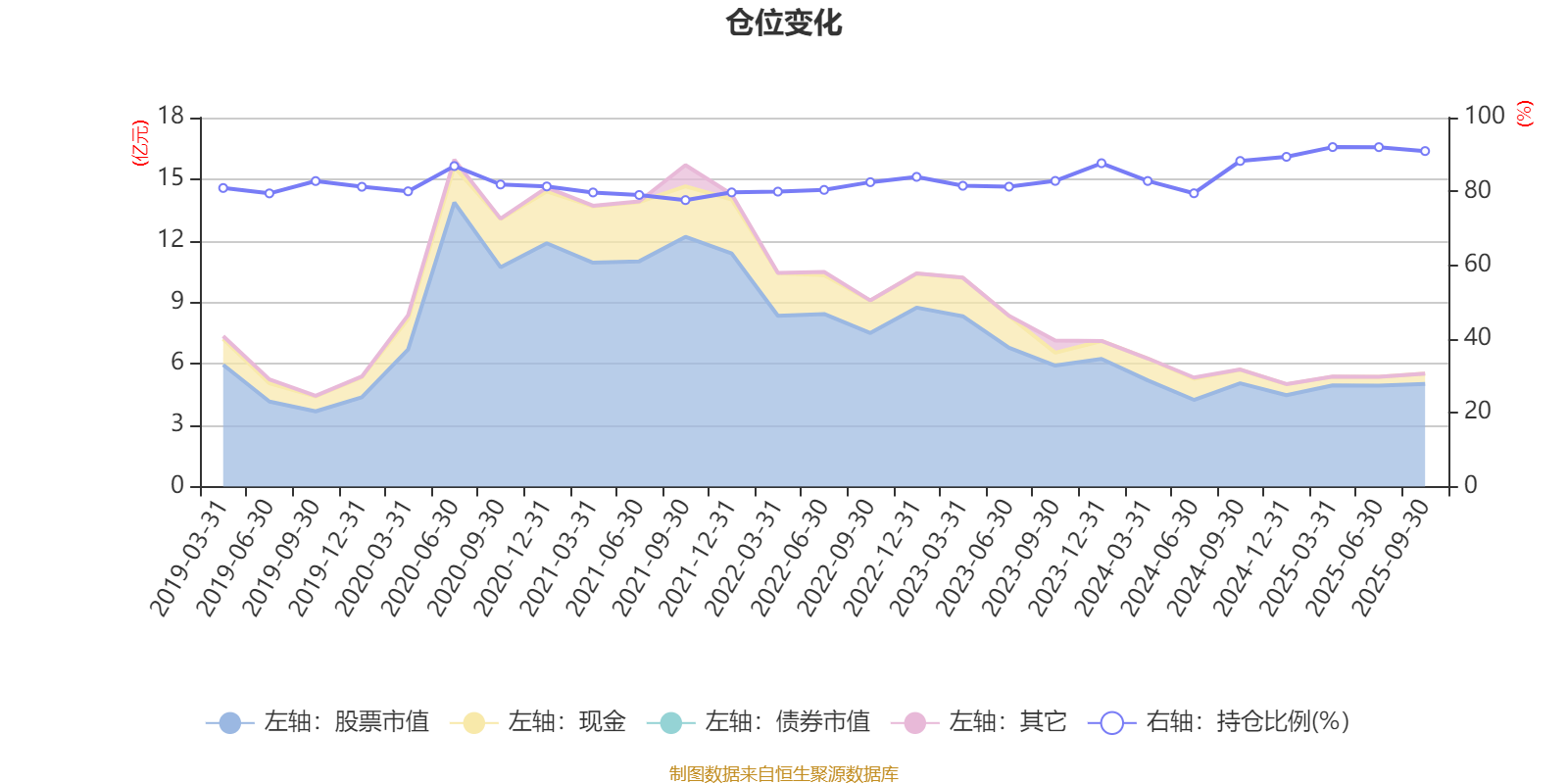 据定期报告数据统计,近三年平均股票仓位为86.01%,同类平均为88.38%。2025年一季度末基金达到92.01%的最高仓位,2021年三季度末最低,为77.64%。