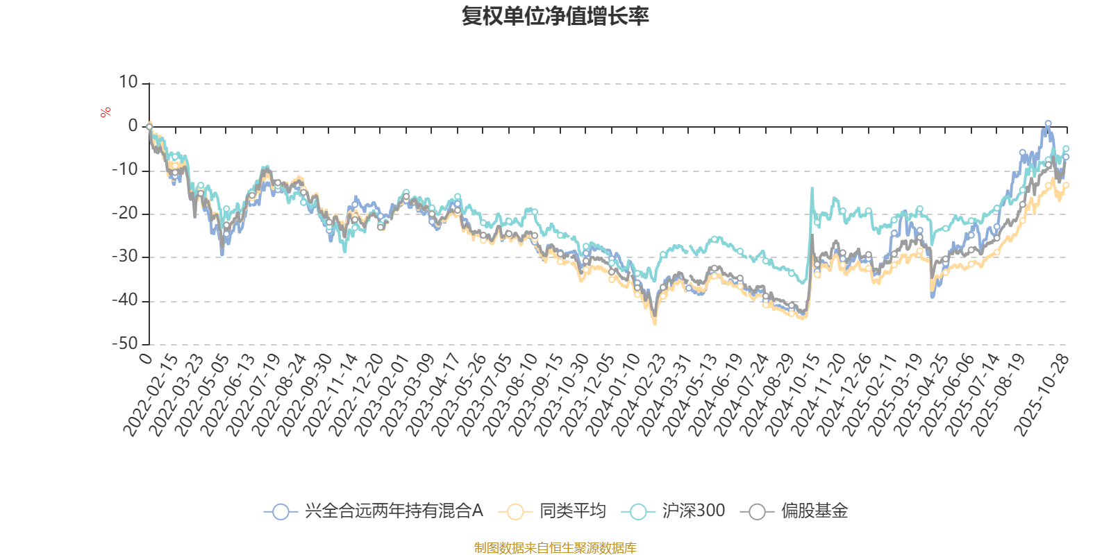 截至10月28日,兴全合远两年持有混合A近三个月复权单位净值增长率为10.43%,位于同类可比基金128/185;近半年复权单位净值增长率为37.98%,位于同类可比基金53/185;近一年复权单位净值增长率为35.28%,位于同类可比基金61/181;近三年复权单位净值增长率为22.93%,位于同类可比基金86/175。