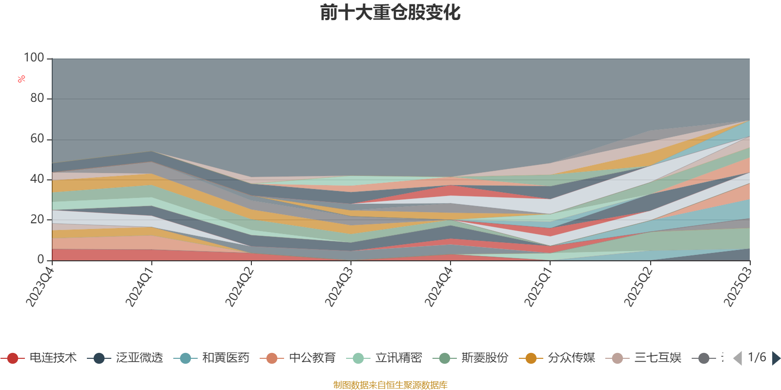 截至2025年三季度末,基金十大重仓股分别是斯菱股份、德昌电机控股、新易盛、中坚科技、福赛科技、泛亚微透、乐普生物-B、东岳集团、舒泰神、云意电气。