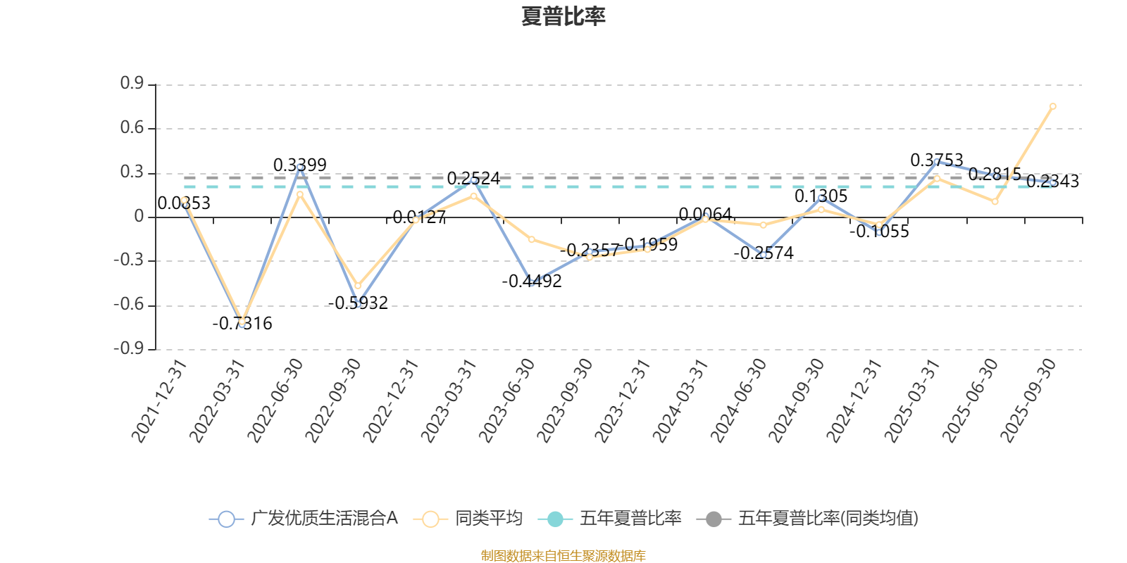 截至9月30日,基金近三年夏普比率为0.2681,位于同类可比基金209/252。