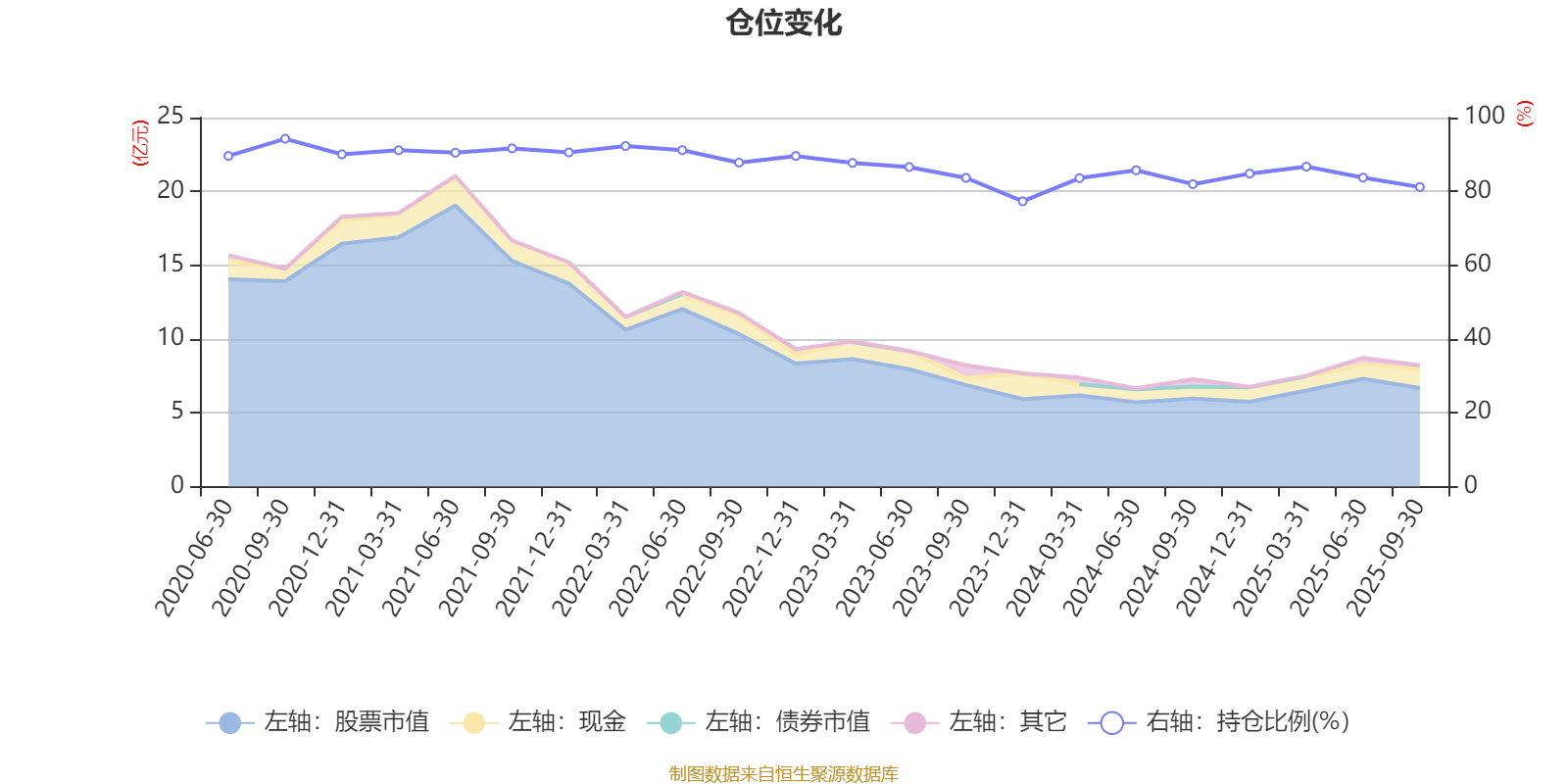 据定期报告数据统计,近三年平均股票仓位为84.38%,同类平均为85.99%。2020年三季度末基金达到94.27%的最高仓位,2023年末最低,为77.31%。