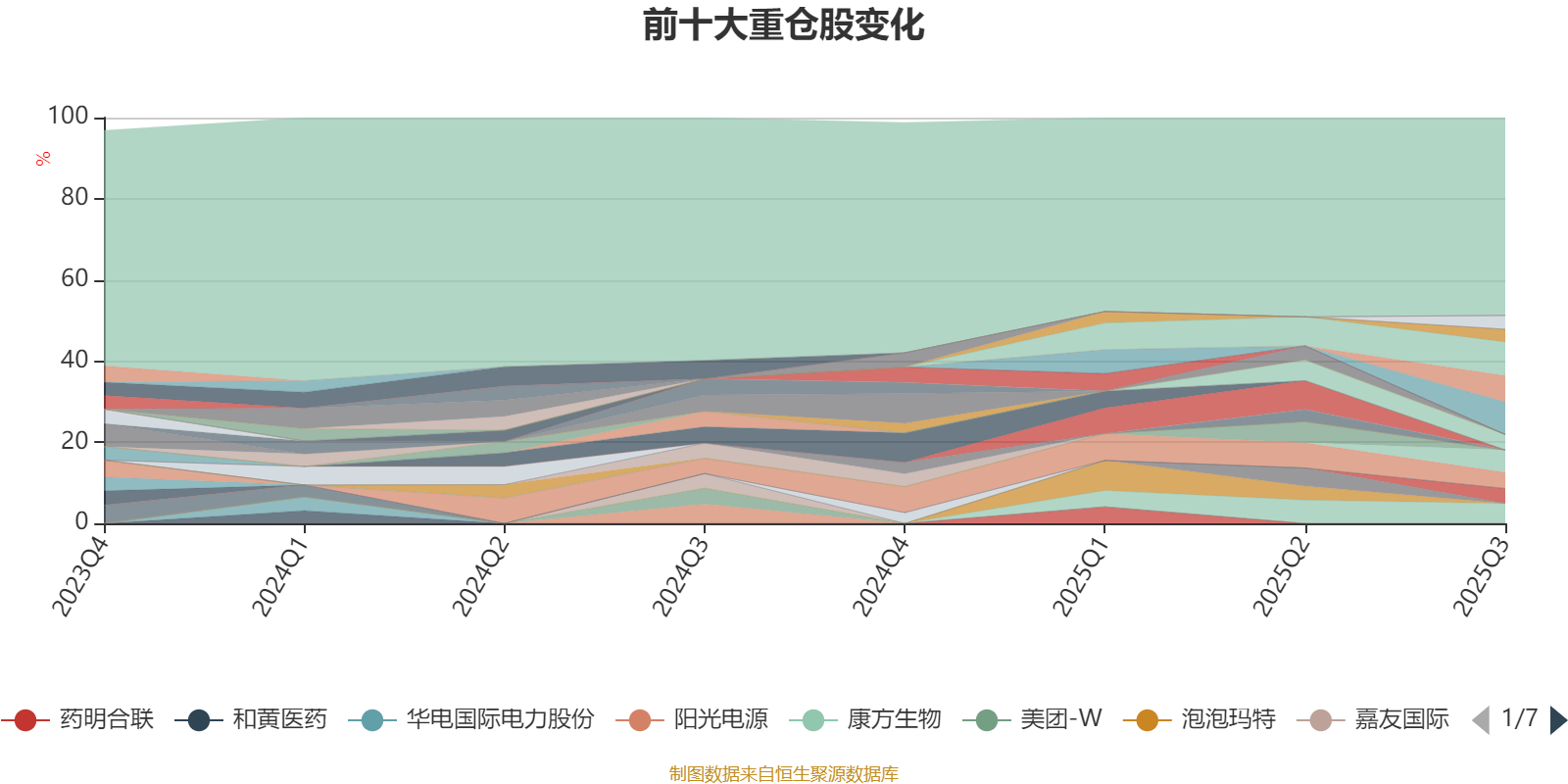 截至2025年三季度末,基金十大重仓股分别是华虹半导体、阿里巴巴-W、工业富联、ST华通、康方生物、腾讯控股、信达生物、恒立液压、江波龙、中国银河。