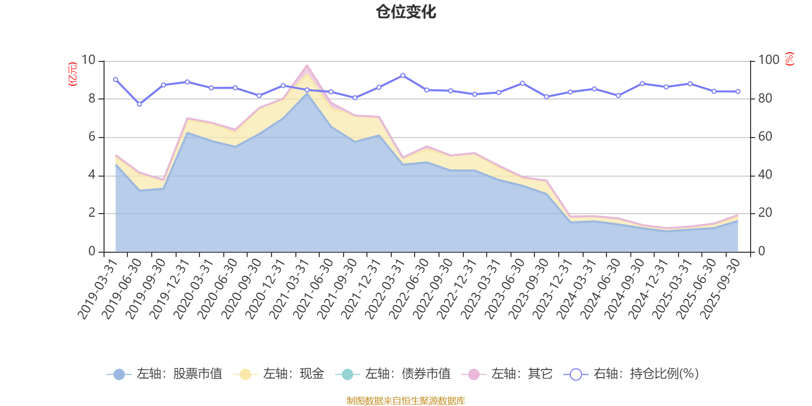 据定期报告数据统计,近三年平均股票仓位为84.76%,同类平均为72.35%。2022年一季度末基金达到92.38%的最高仓位,2019年上半年末最低,为77.38%。