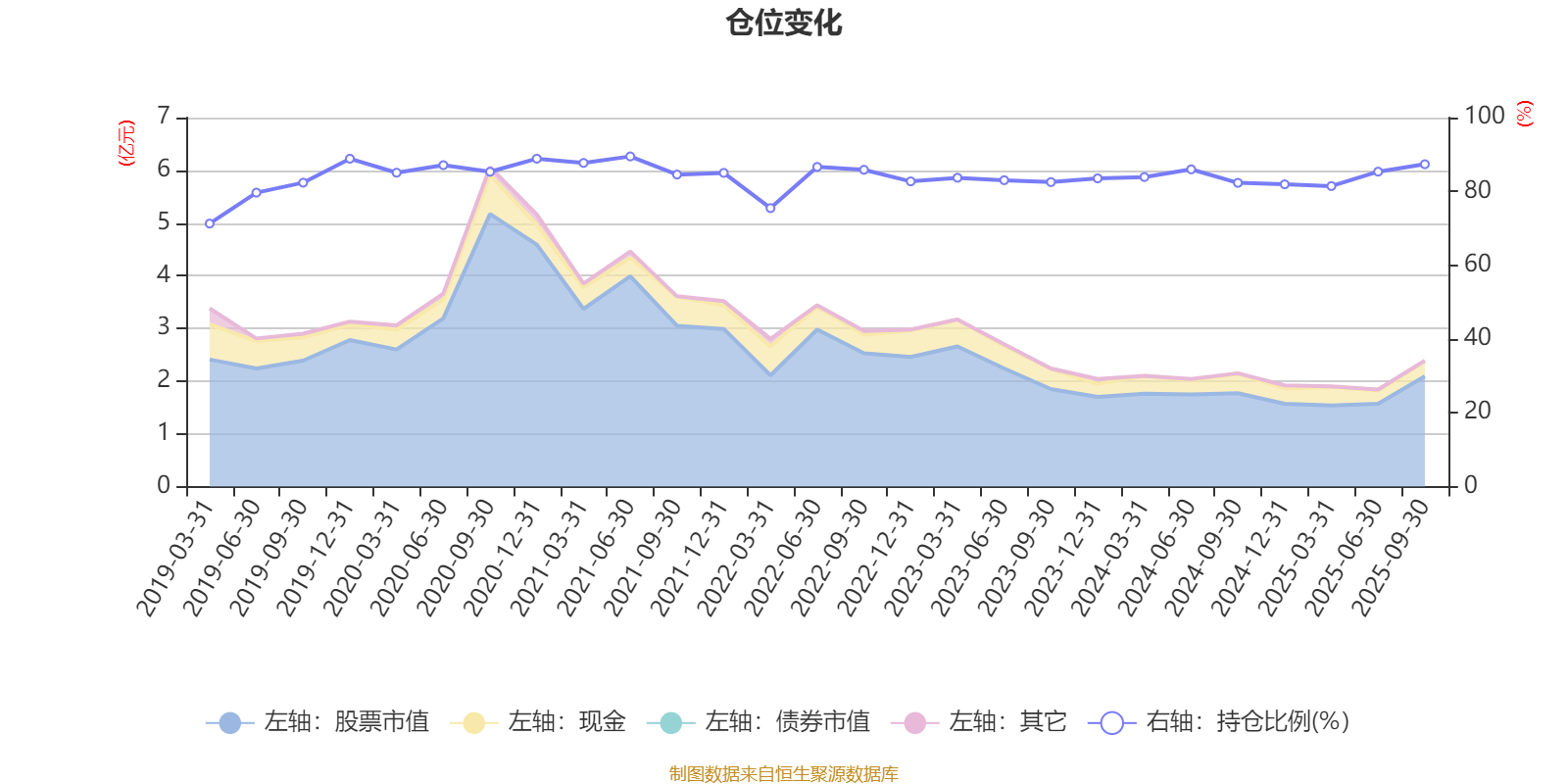 据定期报告数据统计,近三年平均股票仓位为83.64%,同类平均为72.35%。2021年上半年末基金达到89.48%的最高仓位,2019年一季度末最低,为71.27%。