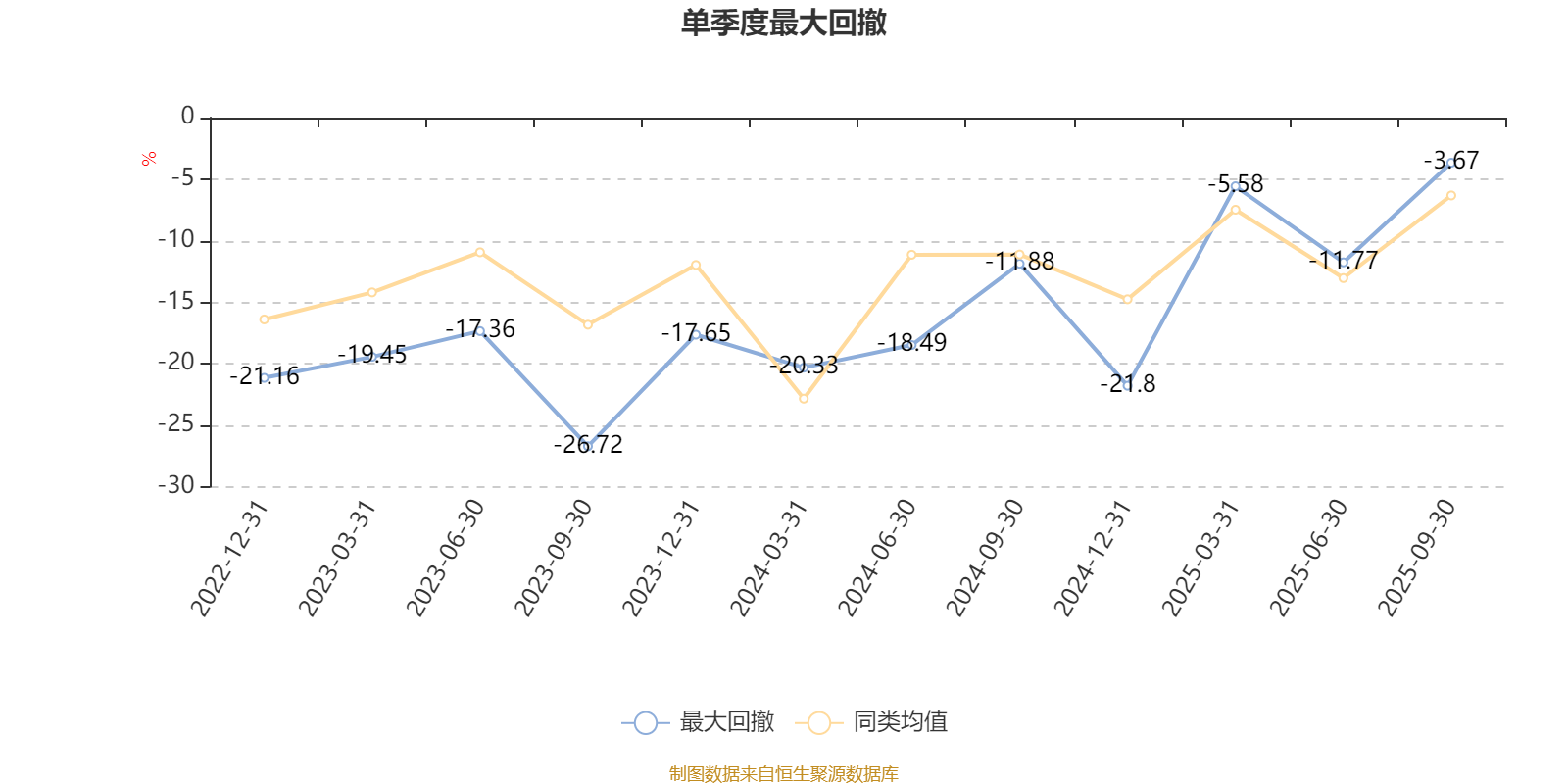 截至10月27日,基金近三年最大回撤为59.23%,同类可比基金排名57/61。单季度最大回撤出现在2023年三季度,为26.72%。