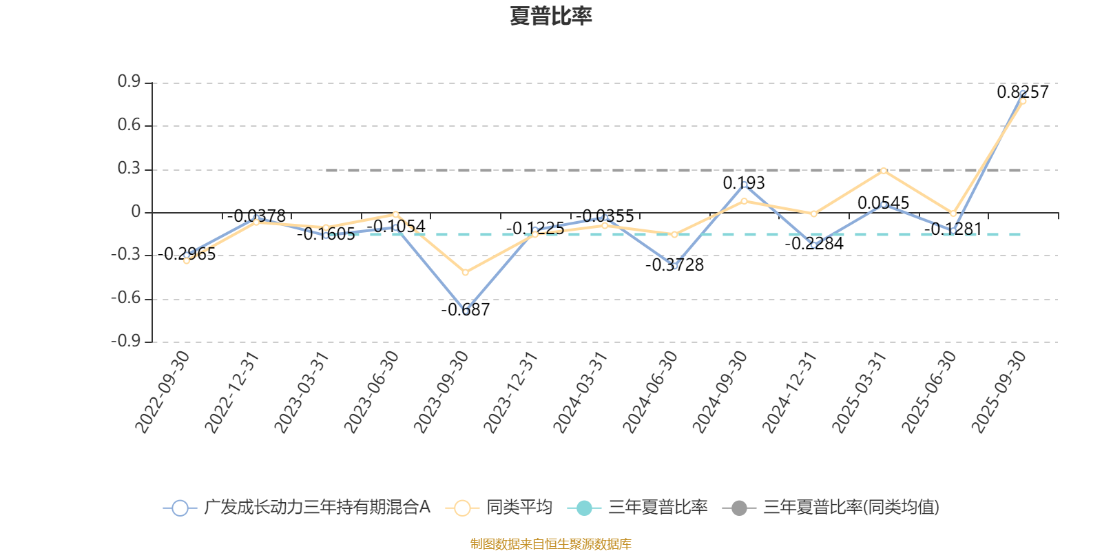 截至9月30日,基金近三年夏普比率为-0.1534,位于同类可比基金55/60。