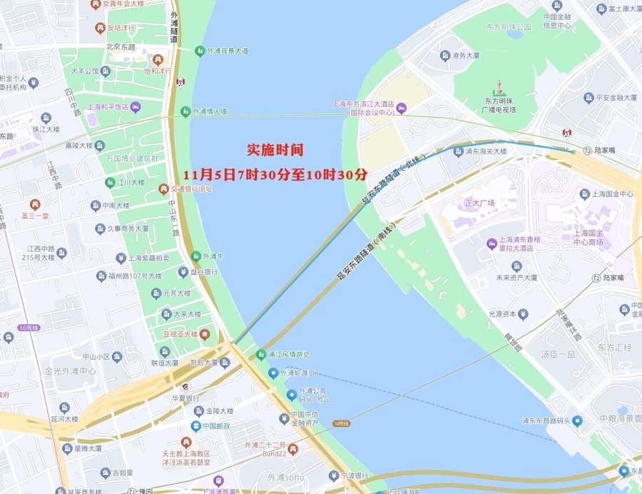 (七)11月5日7时30分至10时30分,延安东路隧道(北线)禁止机动车通行。