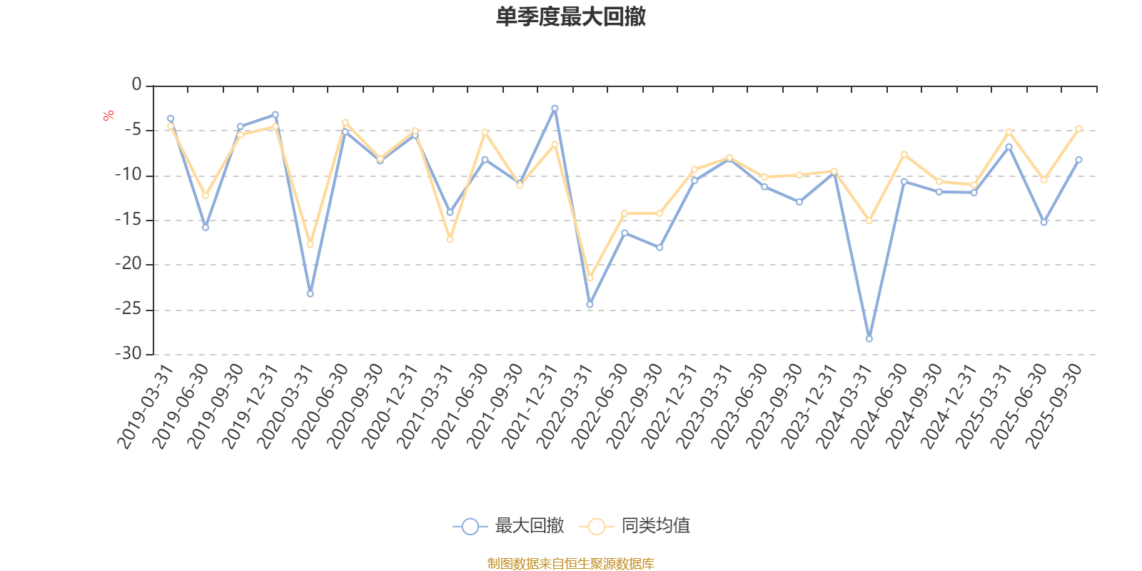 截至10月27日,基金近三年最大回撤为39.76%,同类可比基金排名43/56。单季度最大回撤出现在2024年一季度,为28.26%。