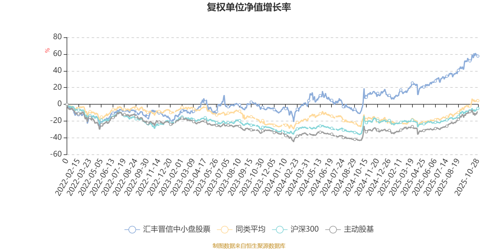 截至10月28日,汇丰晋信中小盘股票近三个月复权单位净值增长率为16.16%,位于同类可比基金6/13;近半年复权单位净值增长率为30.82%,位于同类可比基金7/13;近一年复权单位净值增长率为37.64%,位于同类可比基金5/12;近三年复权单位净值增长率为74.34%,位于同类可比基金2/9。