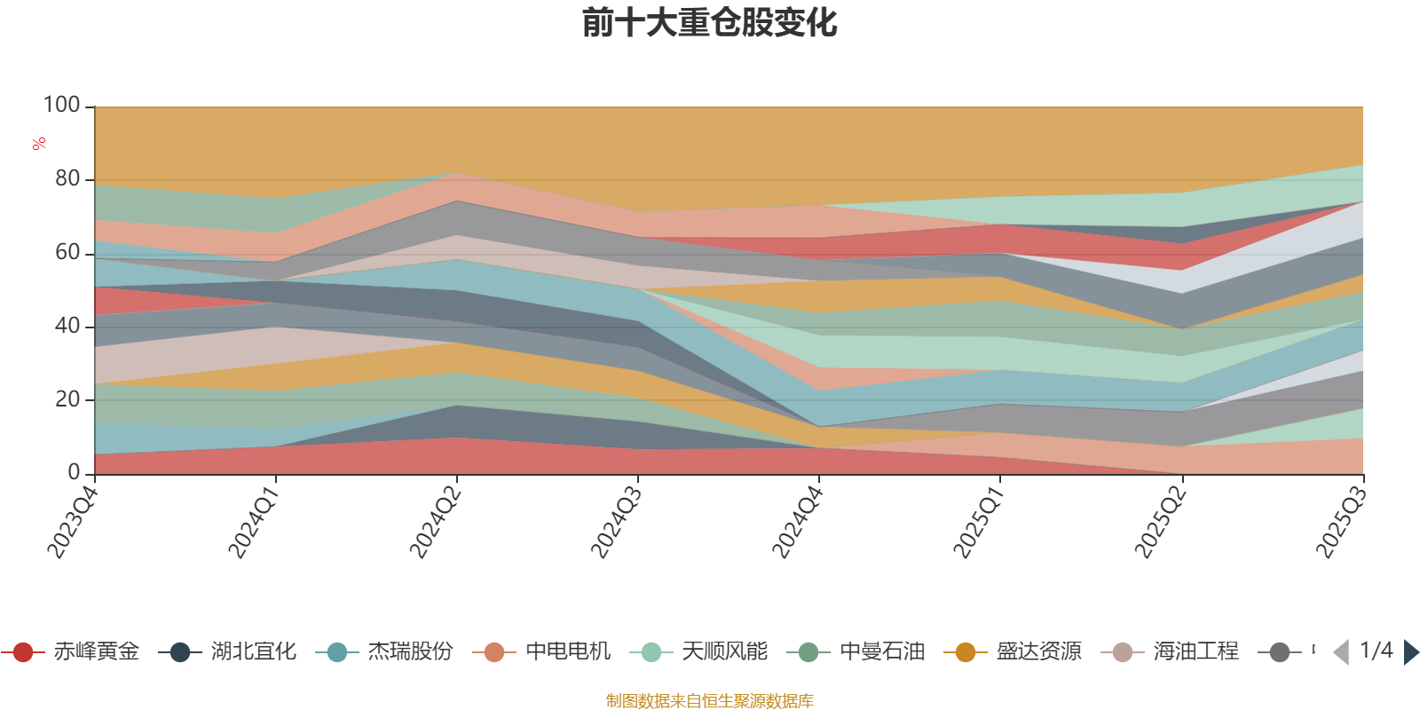 该基金持股集中度较高,近2年前十大重仓股集中度长期超过60%。截至2025年三季度末,基金十大重仓股分别是中国国航、南方航空、中国东航、吉祥航空、中电电机、河钢资源、天顺风能、山高环能、林洋能源、华锦股份。