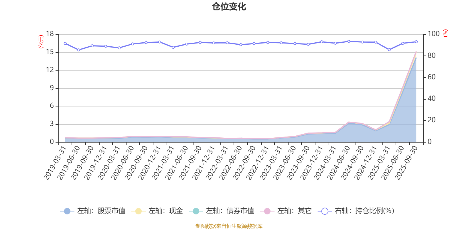 据定期报告数据统计,近三年平均股票仓位为91.79%,同类平均为89.52%。2024年上半年末基金达到93.49%的最高仓位,2019年上半年末最低,为85.58%。