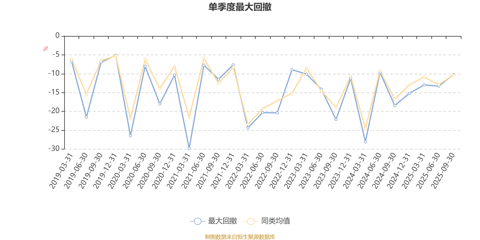 通过所选区间该基金净值增长率分位图,可以观察该基金与同类基金业绩比较情况。图为坐标原点到区间内某时点的净值增长率在同类基金中的分位数。