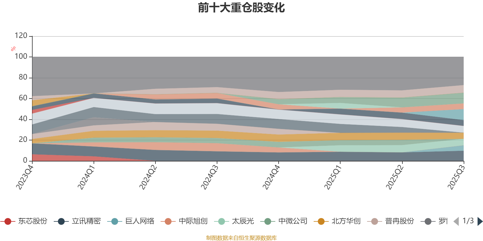 该基金持股集中度较高,近2年前十大重仓股集中度长期超过60%。截至2025年三季度末,基金十大重仓股分别是源杰科技、新易盛、立讯精密、兆易创新、圣邦股份、太辰光、北方华创、恺英网络、沪电股份、巨人网络。