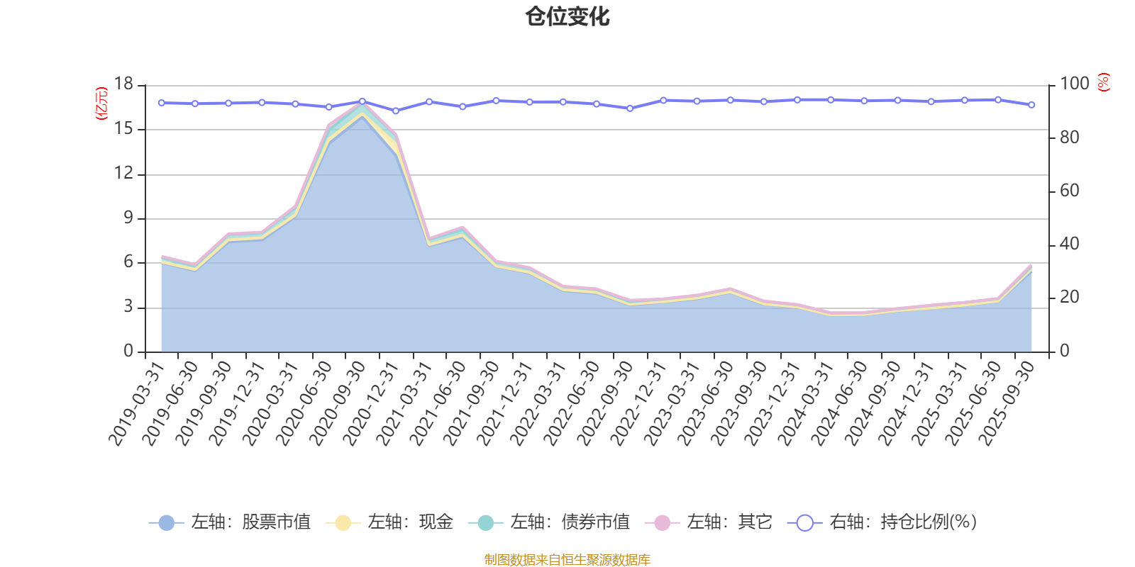 据定期报告数据统计,基金股票仓位长期保持较高水平,近三年平均股票仓位为94.08%,同类平均为88.29%。2025年上半年末基金达到94.49%的最高仓位,2020年末最低,为90.33%。