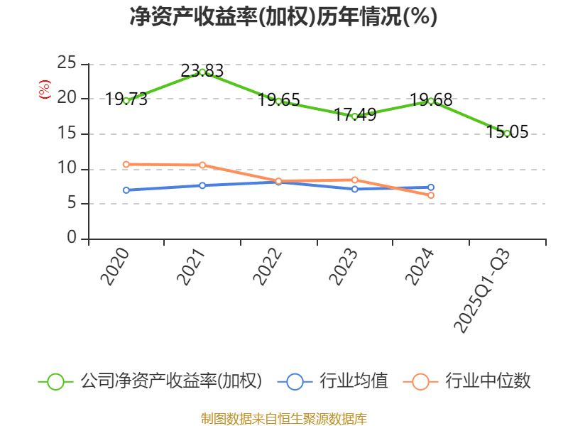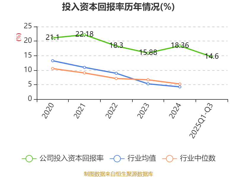 盈利能力方面, 2025年前三季度公司加权平均净资产收益率为15.05%,同比上升0.34个百分点。公司2025年前三季度投入资本回报率为14.6%,较上年同期上升0.87个百分点。
