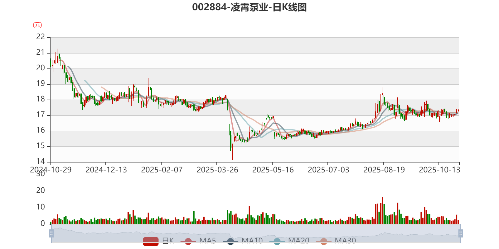 中证智能财讯凌霄泵业(002884)10月29日披露2025年第三季度报告。前三季度公司实现营业总收入12.7亿元,同比增长8.81%;归母净利润3.51亿元,同比增长6.47%;扣非净利润3.35亿元,同比增长3.41%;经营活动产生的现金流量净额为2.99亿元,同比增长16.51%;报告期内,凌霄泵业基本每股收益为0.98元,加权平均净资产收益率为15.05%。