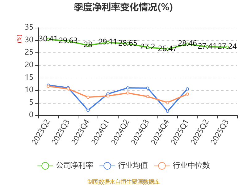 2025年前三季度,公司流动比率为13.42,速动比率为11.27。