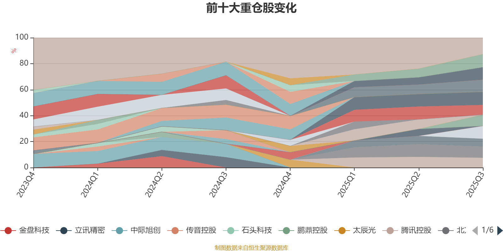 该基金持股集中度较高。截至2025年三季度末,基金十大重仓股分别是中芯国际、乐鑫科技、中微公司、拓荆科技、阿里巴巴-W、寒武纪、北方华创、小米集团-W、腾讯控股、安集科技。
