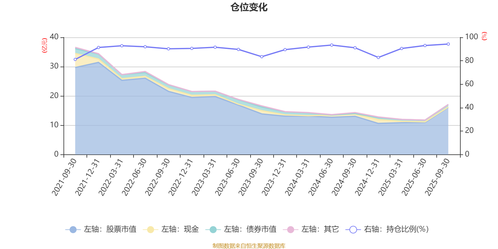 据定期报告数据统计,近三年平均股票仓位为90.15%,同类平均为88.58%。2025年三季度末基金达到94.29%的最高仓位,2021年三季度末最低,为81.16%。