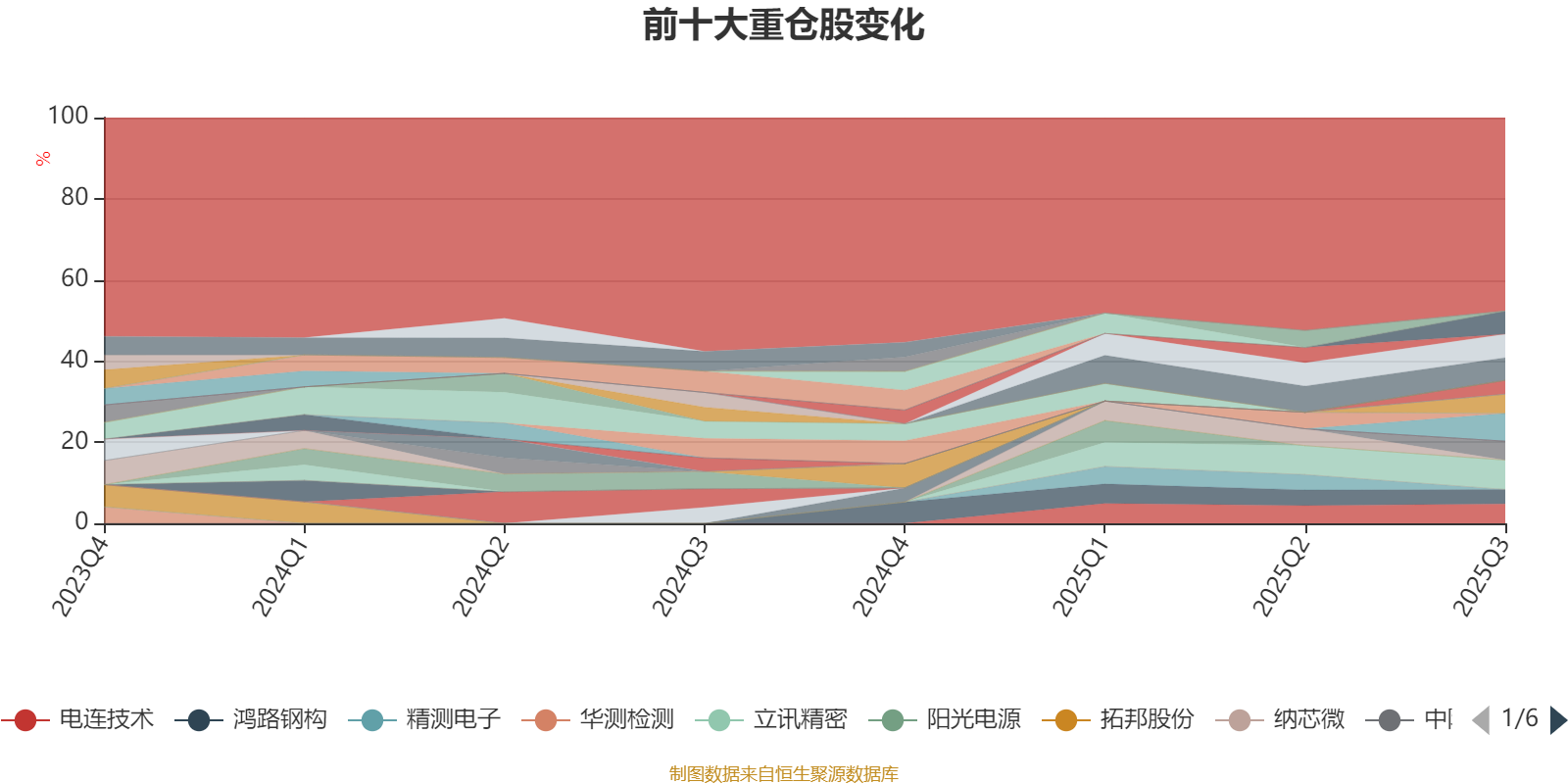 截至2025年三季度末,基金十大重仓股分别是立讯精密、中微公司、思特威、银轮股份、广联达、电连技术、宁德时代、中际旭创、鸿路钢构、汇顶科技。