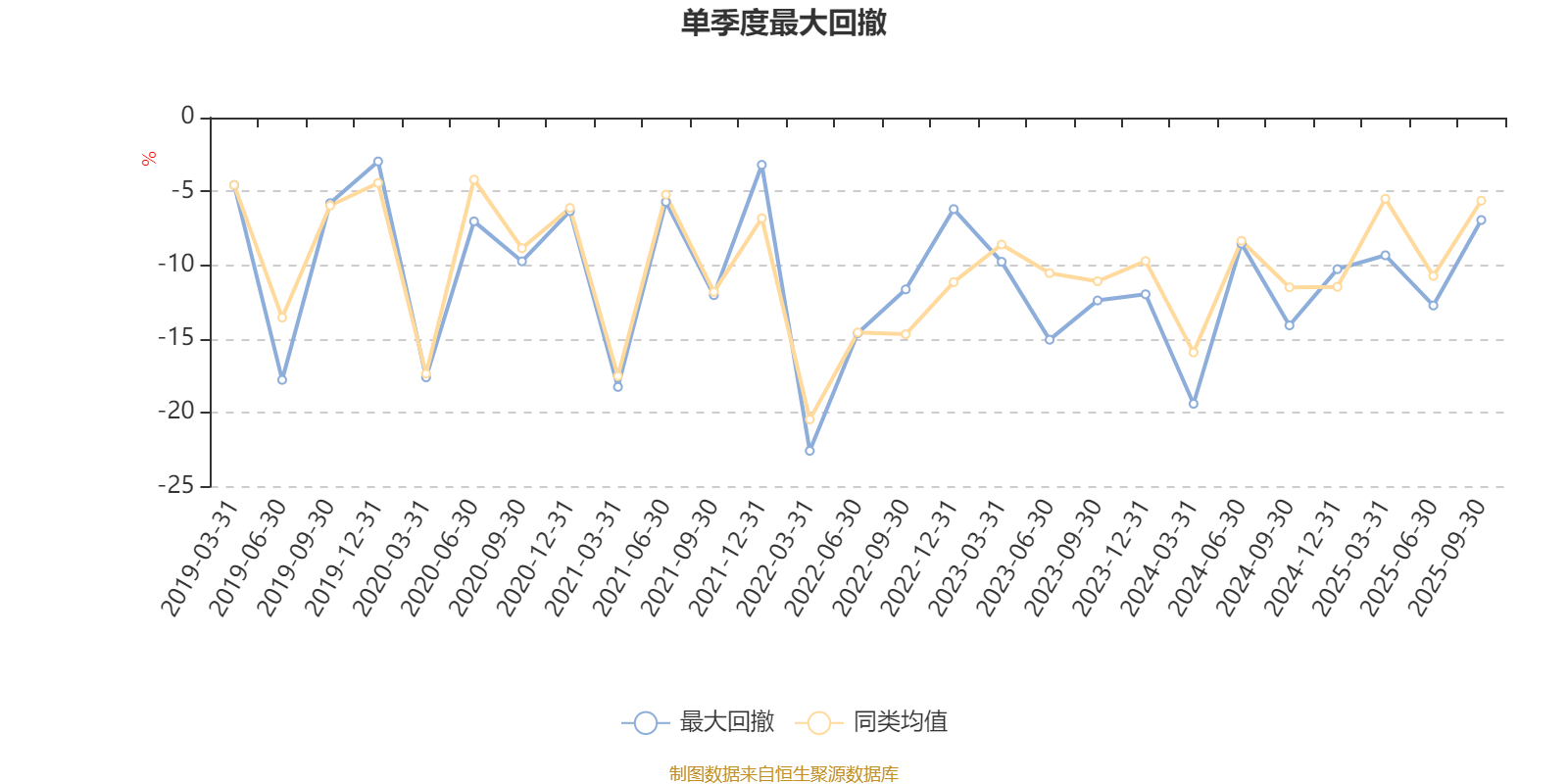 截至10月28日,基金近三年最大回撤为42.83%,同类可比基金排名45/55。单季度最大回撤出现在2022年一季度,为22.58%。