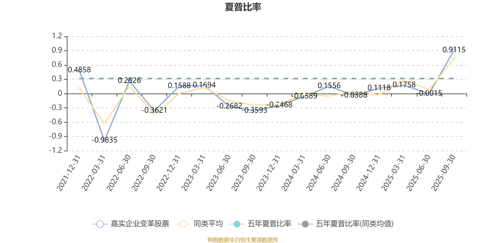截至9月30日,基金近三年夏普比率为0.5362,位于同类可比基金93/156。
