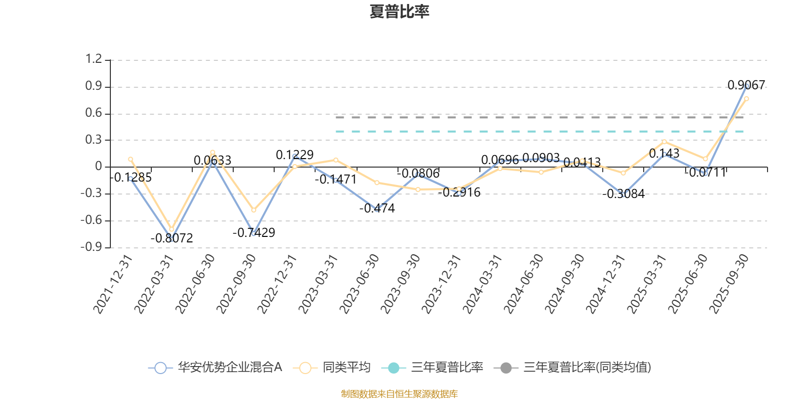 截至9月30日,基金近三年夏普比率为0.3982,位于同类可比基金132/177。