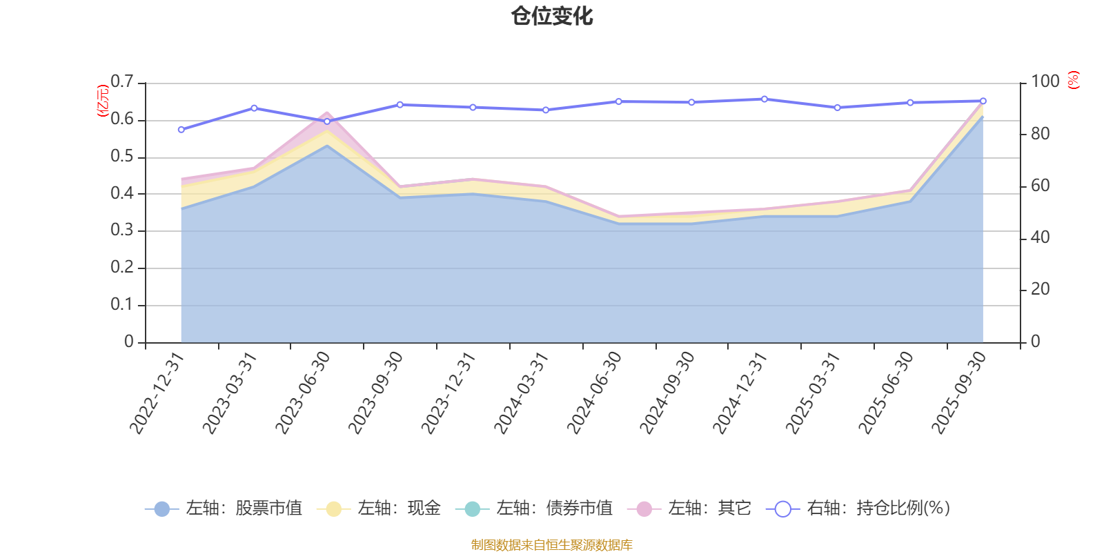 据定期报告数据统计,近三年平均股票仓位为90.33%,同类平均为88.23%。2024年末基金达到93.74%的最高仓位,2022年末最低,为81.98%。