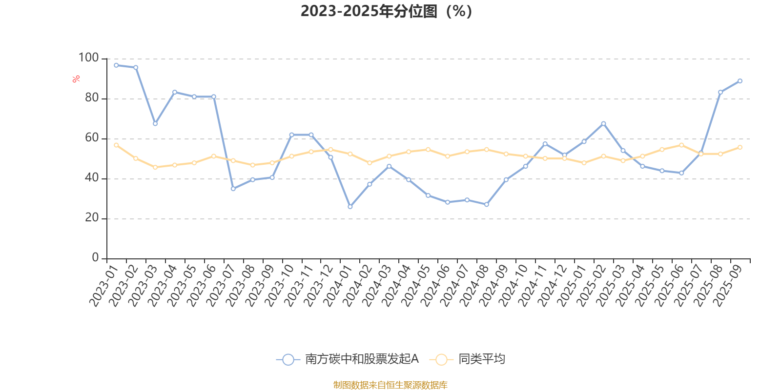 通过所选区间该基金净值增长率分位图,可以观察该基金与同类基金业绩比较情况。图为坐标原点到区间内某时点的净值增长率在同类基金中的分位数。