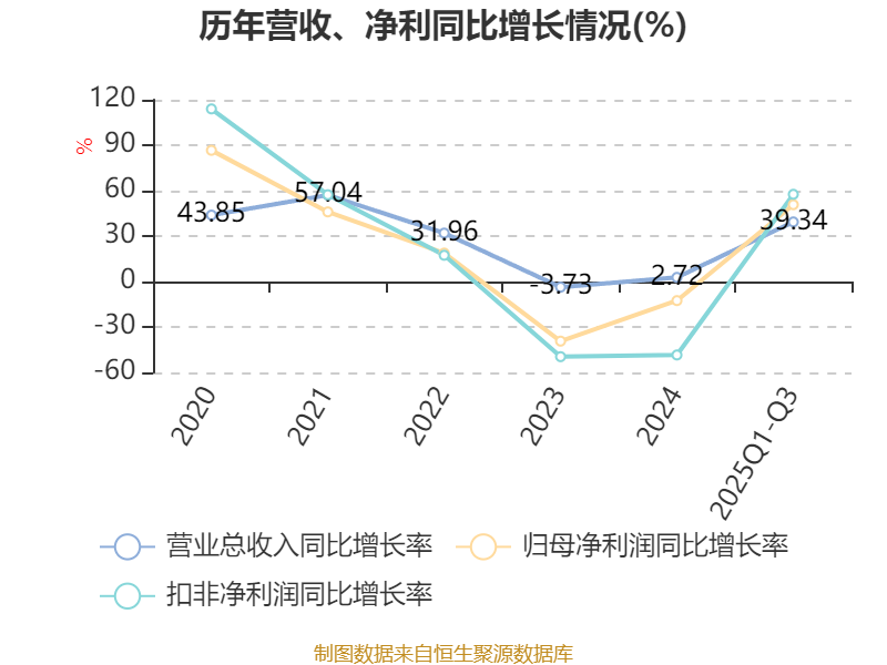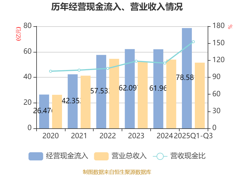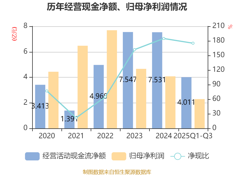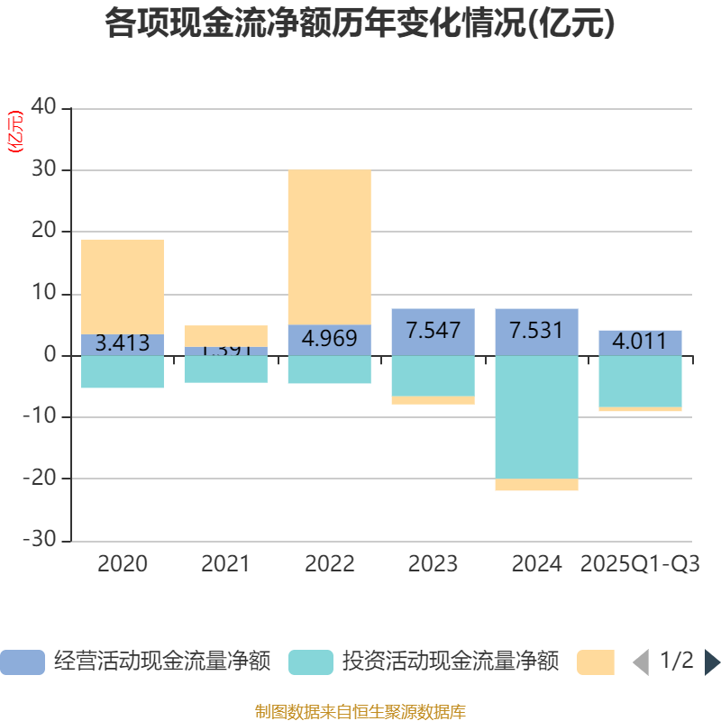 2025年前三季度,公司经营活动现金流净额为4.01亿元,同比下降13.7%;筹资活动现金流净额-6418.77万元,同比增加1.46亿元;投资活动现金流净额-8.38亿元,上年同期为-16.72亿元。