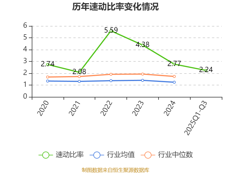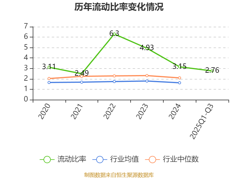 2025年前三季度,公司流动比率为2.76,速动比率为2.24。