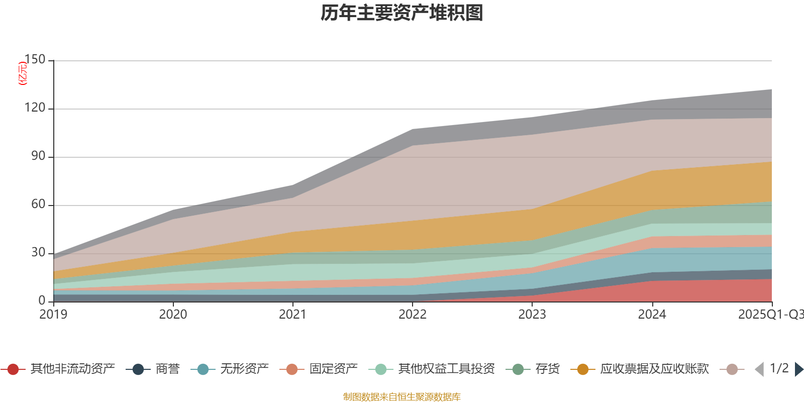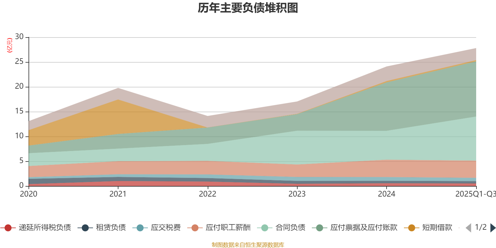 负债重大变化方面,截至2025年三季度末,公司合同负债较上年末增加52.92%,占公司总资产比重上升2.09个百分点;应付票据及应付账款较上年末增加13.91%,占公司总资产比重上升0.62个百分点;其他流动负债较上年末减少76.14%,占公司总资产比重下降0.38个百分点;应付职工薪酬较上年末减少1.19%,占公司总资产比重下降0.18个百分点。